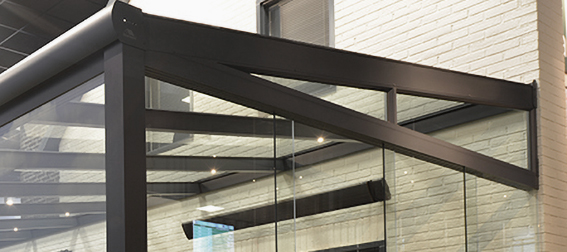 Sowohl die Glasschiebewände als auch der Sonnenschutz können an der bestehenden Überdachung montiert werden.